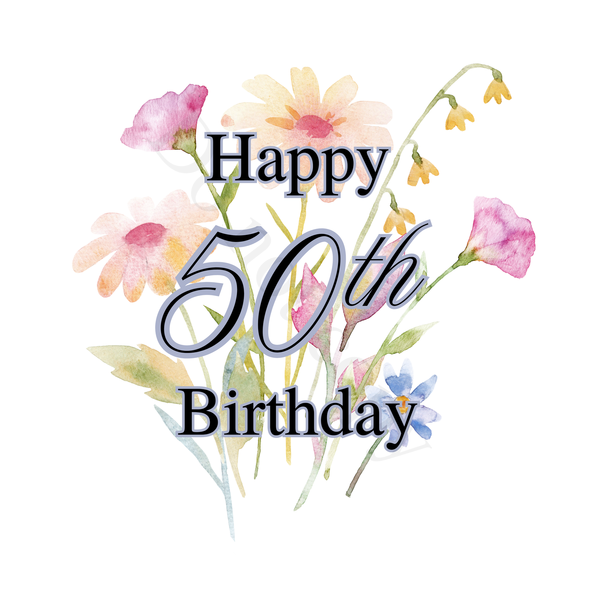 UV-DTF Transfer - Happy Birthday 50th birthday with spring flowers background