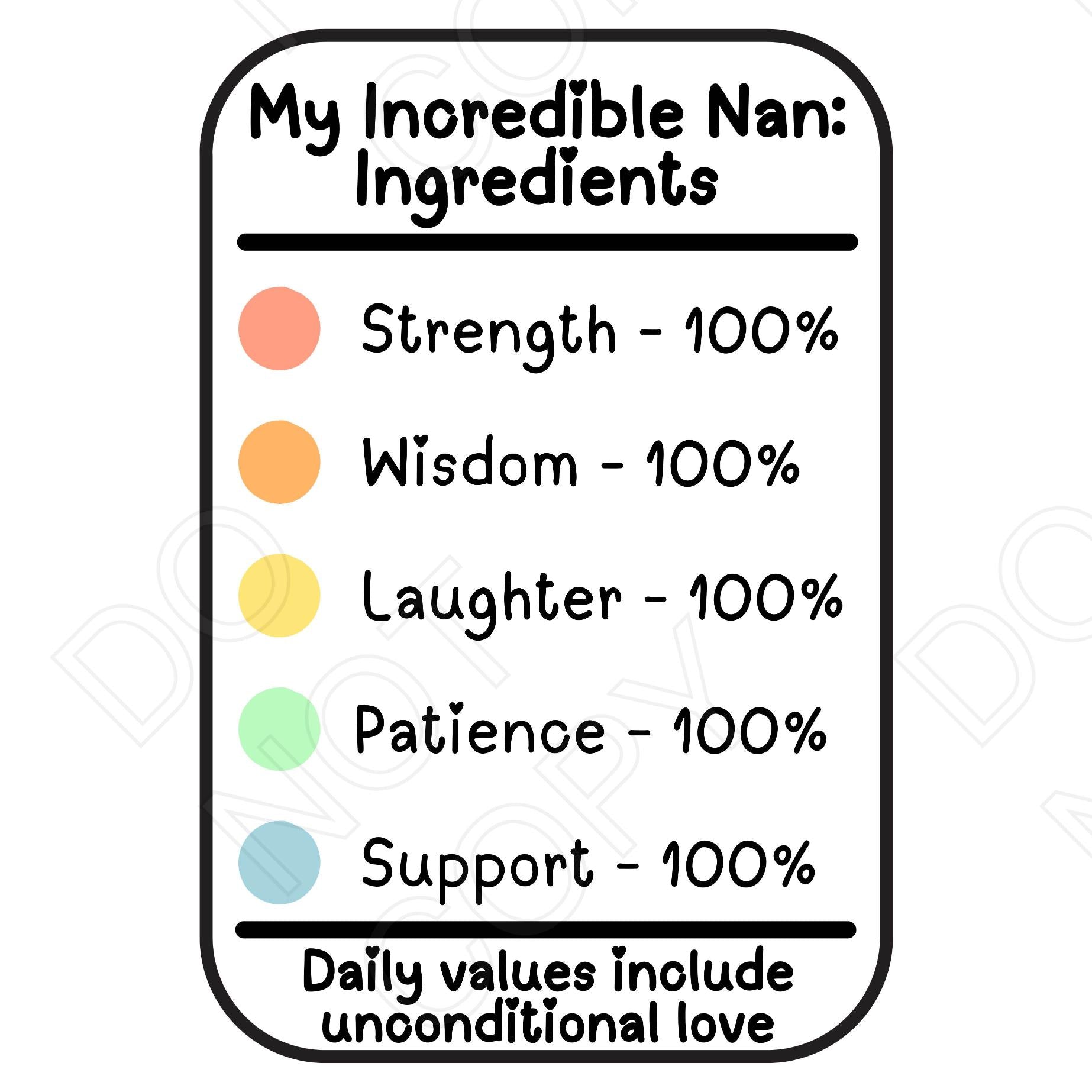 This is a 10cm high design with a humorous nutrition card style design aimed towards the mother/grandmother figures in your life.